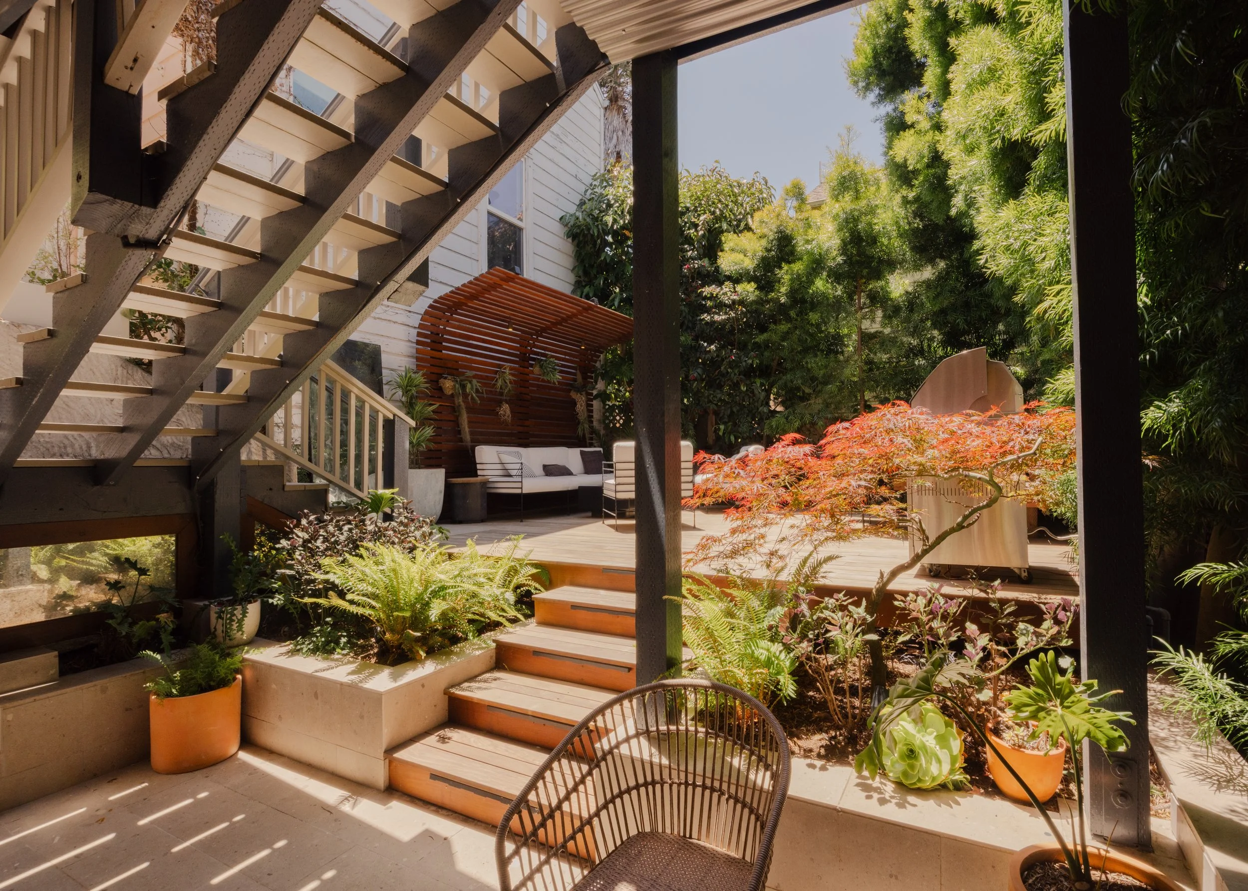 The result is a layered, livable outdoor environment that connects the inhabitant directly to the sights and sounds of Glen Canyon. From the forest canopy views on the upper deck to the functional, reimagined garden below, this space reflects JML’s commitment to creative problem-solving, sustainable practices, and deep respect for place.