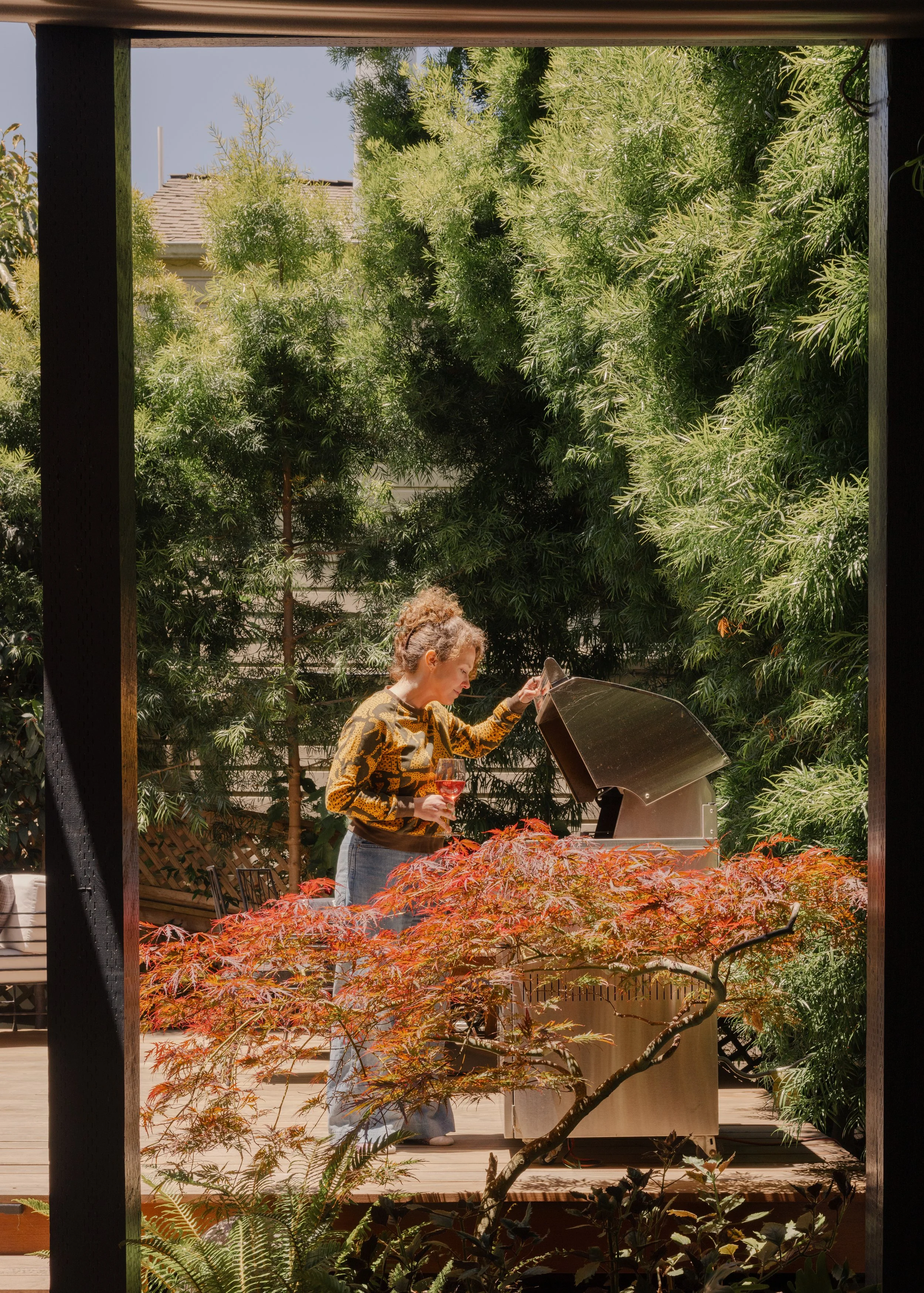 We began our design process with a set of key words to guide us: lush, calm, contemporary, and ensconced. Embracing the verticality of the surrounding space and wrapping ourselves in the garden inspired the concept of a cocoon—tranquil yet transformative. We prioritized the three points of privacy: from the neighbors at the rear, the neighbors to the south, and the windows of the grandfathered-in carriage house next door, perched at the very back of the property.