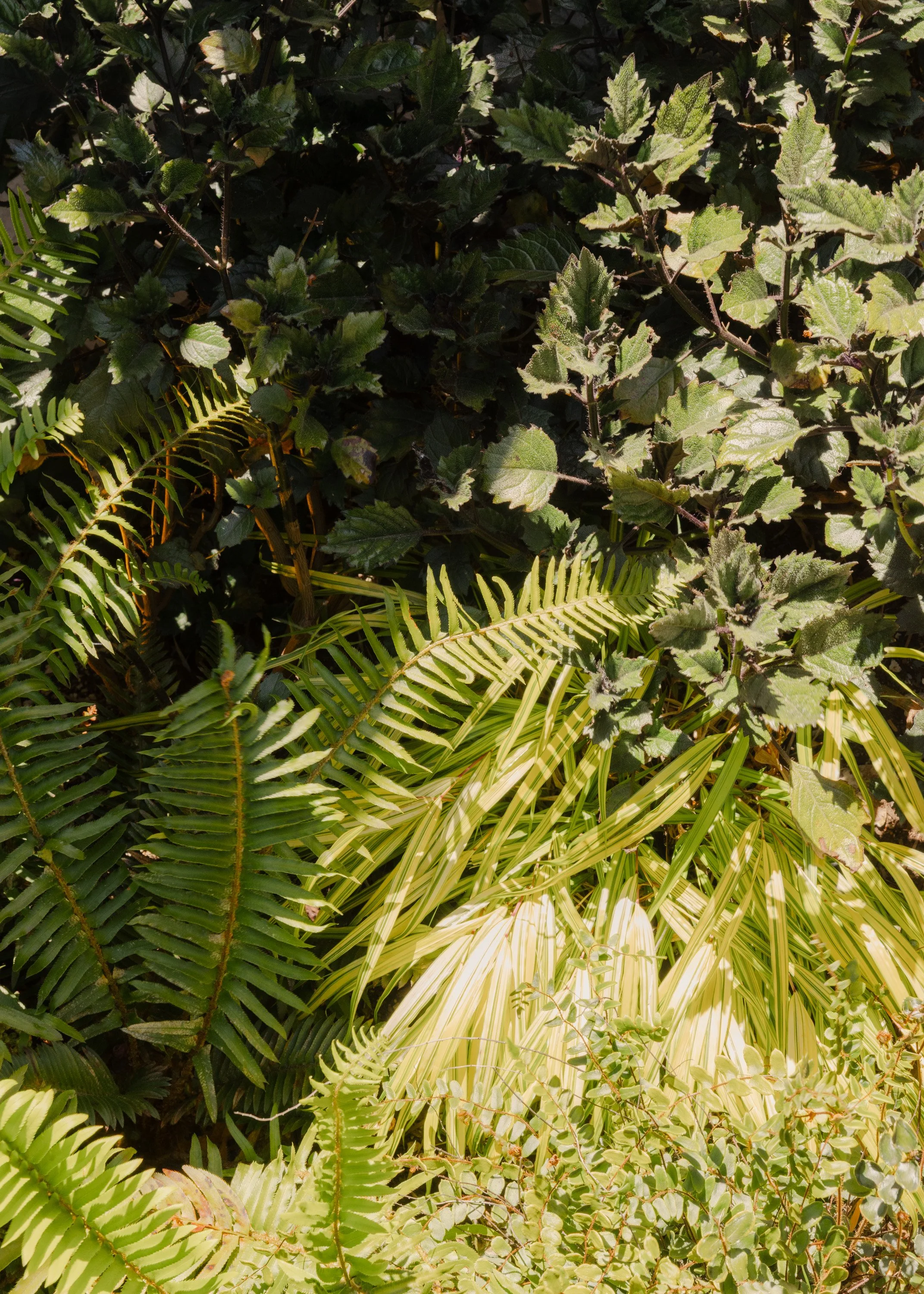 The simple material palette contributes to the contemporary aesthetic and compliments the lush green plant palette, creating a calming effect. This Japanese maple had survived several transplants previously, so we figured it could handle one more to get it in just the right place.
