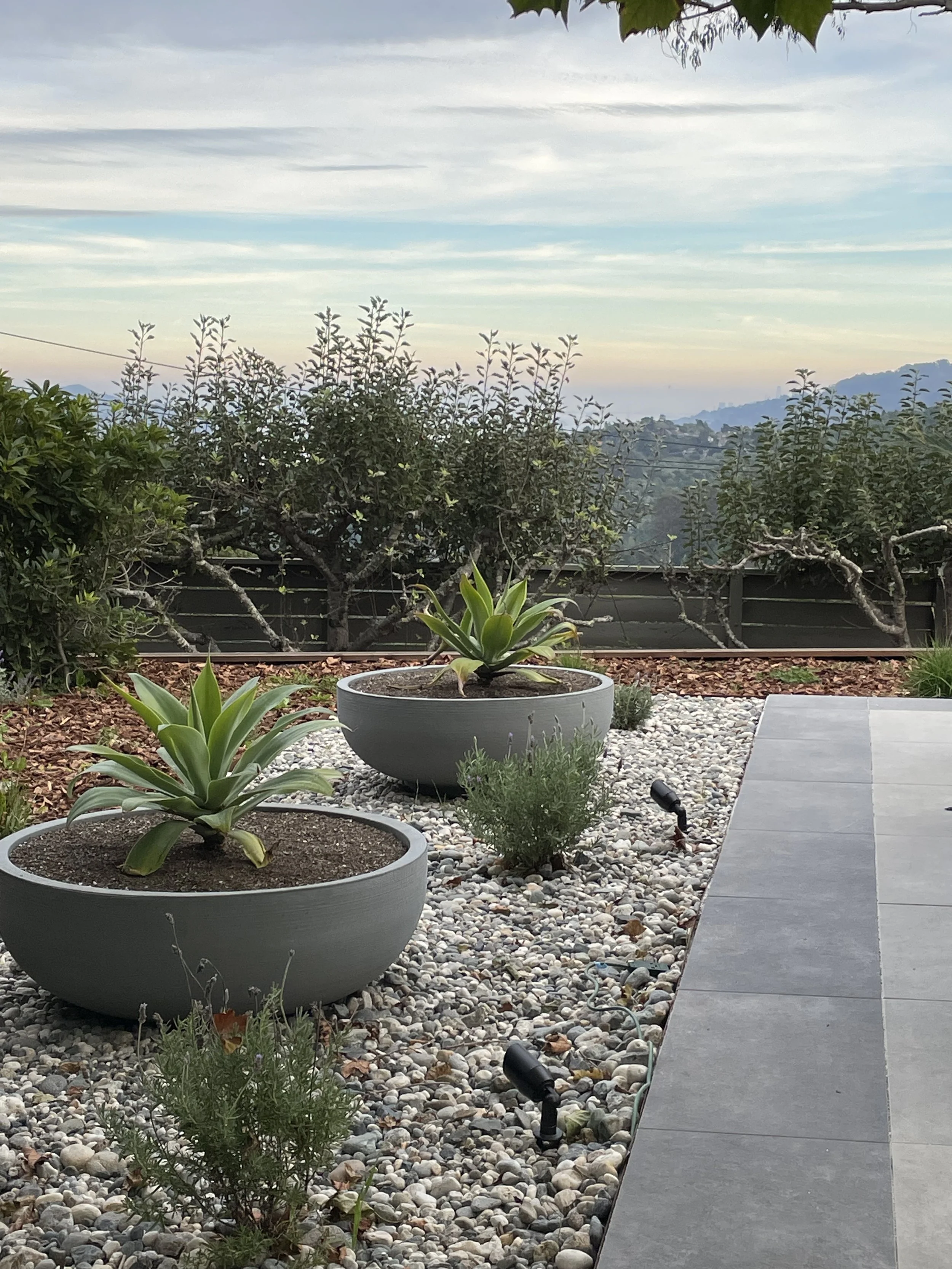 This microclimate has the luxury of being protected from fog on many days, which allowed us to use drought tolerant plants with tidy sculptural qualities.