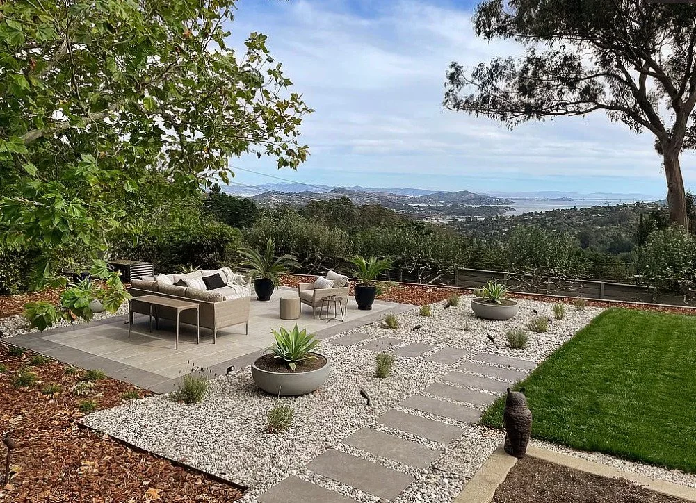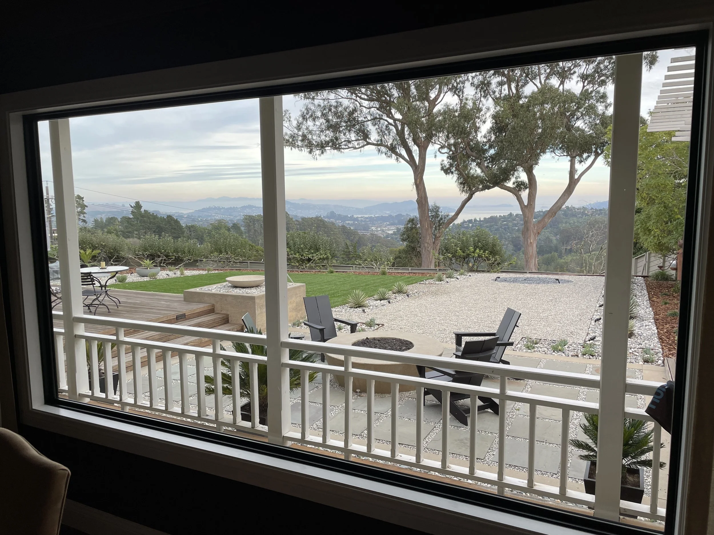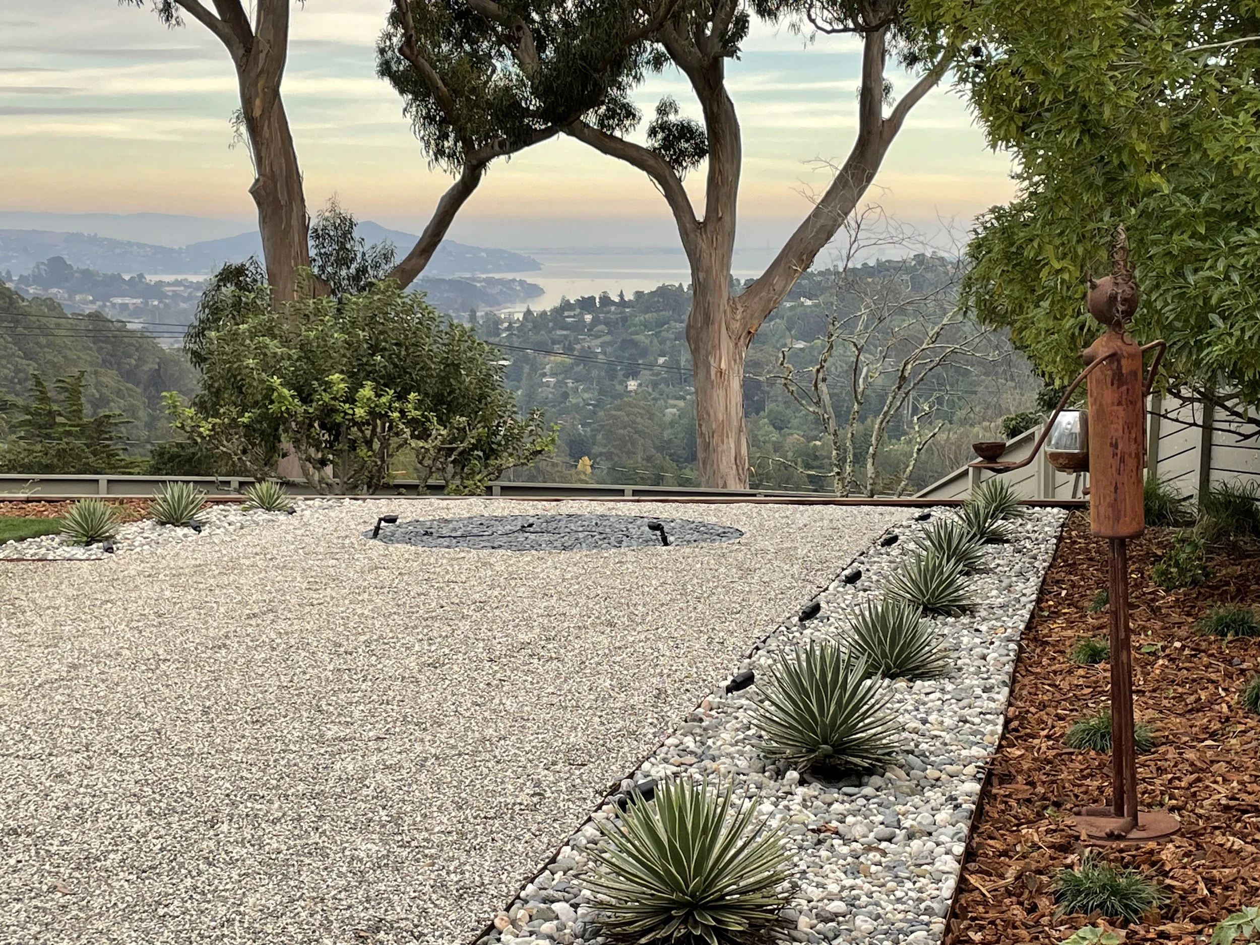 An existing stand of sycamore trees provided a perfect place to tuck a formal patio and seating area which create a destination where the inhabitants can feel as if they’re floating up above the misty bay below.