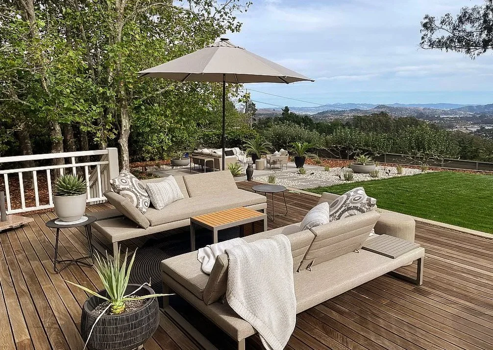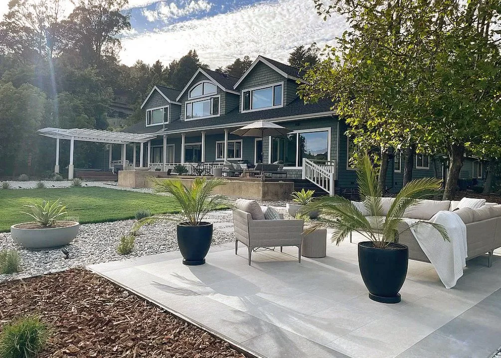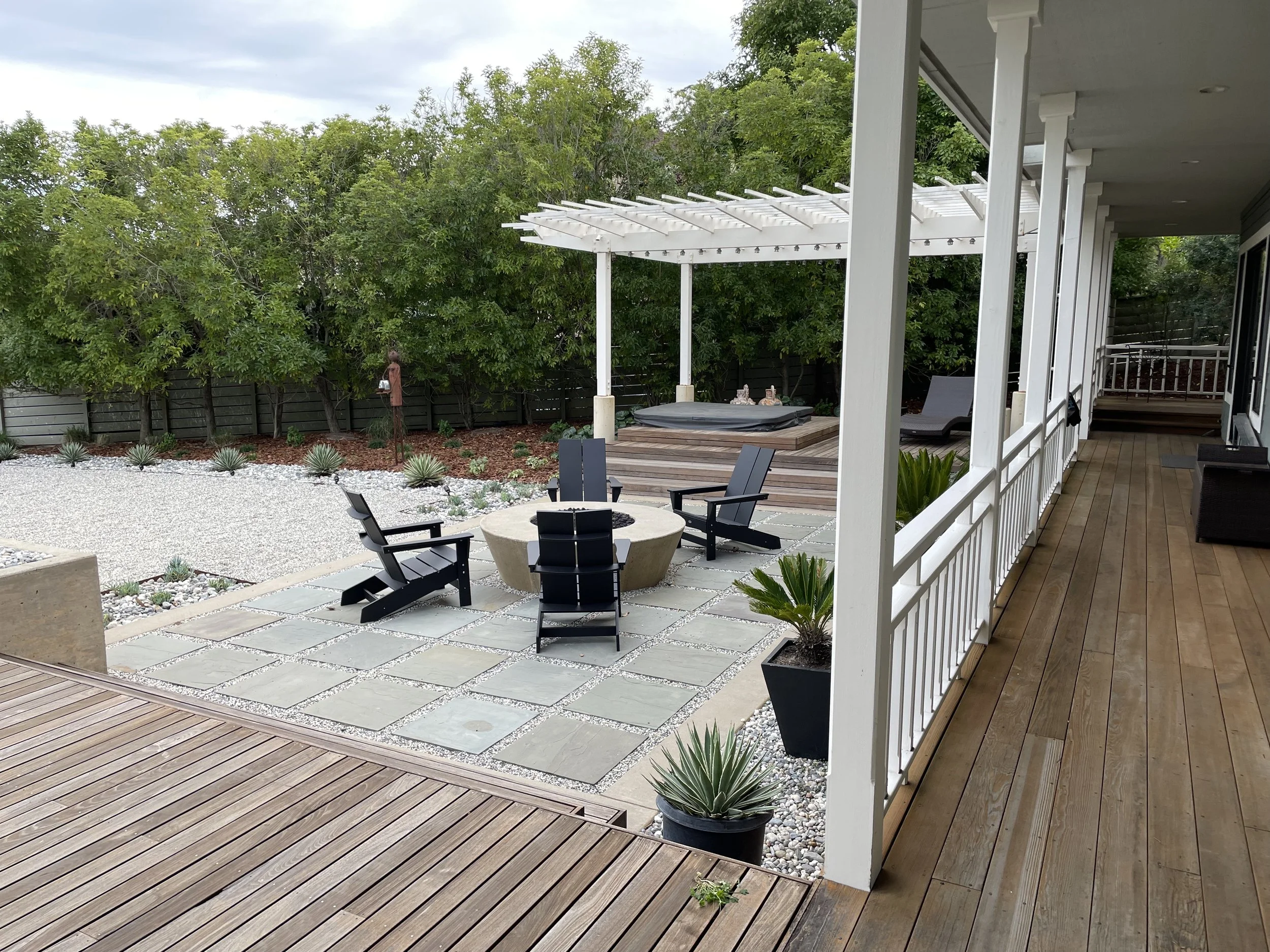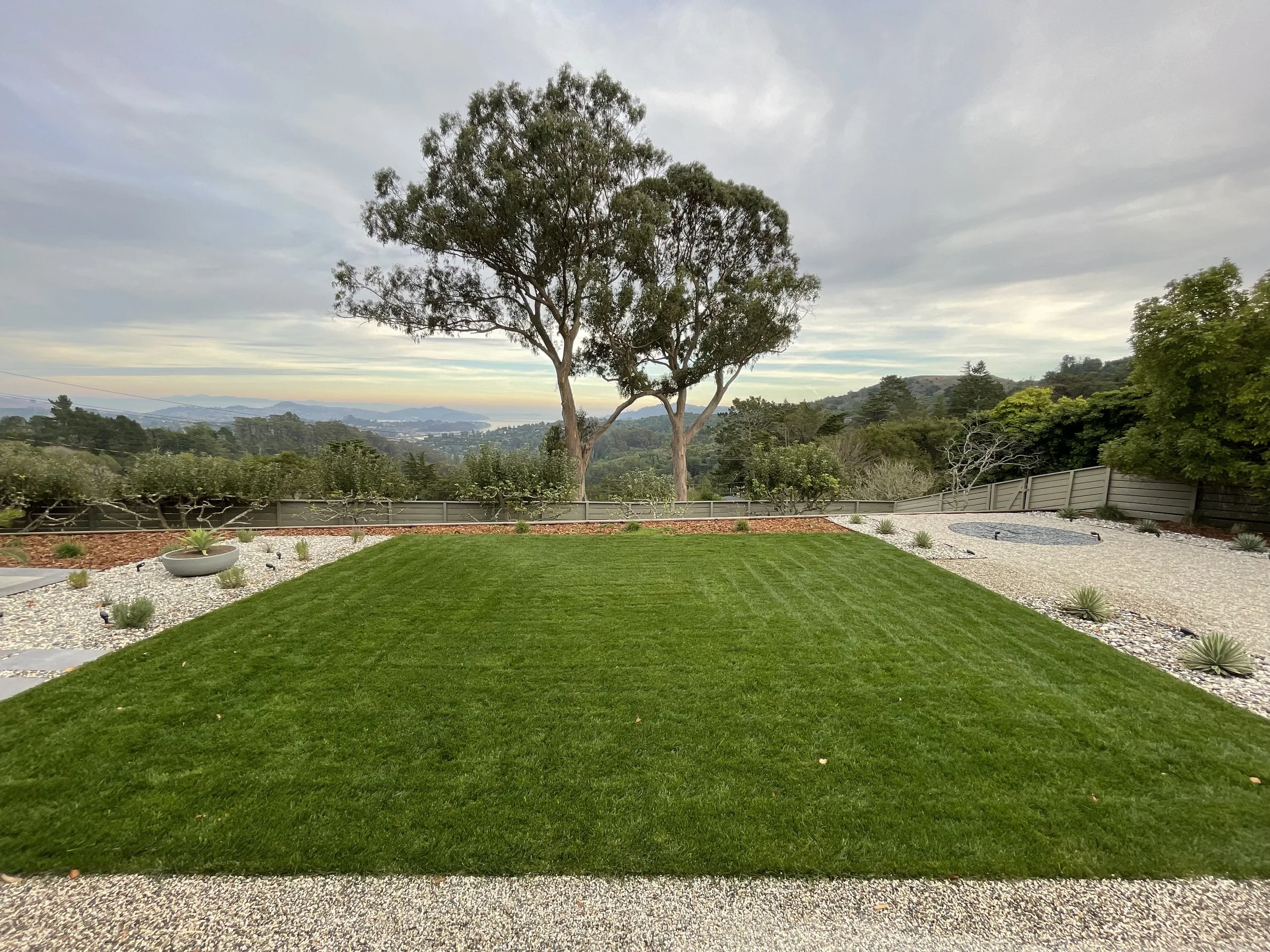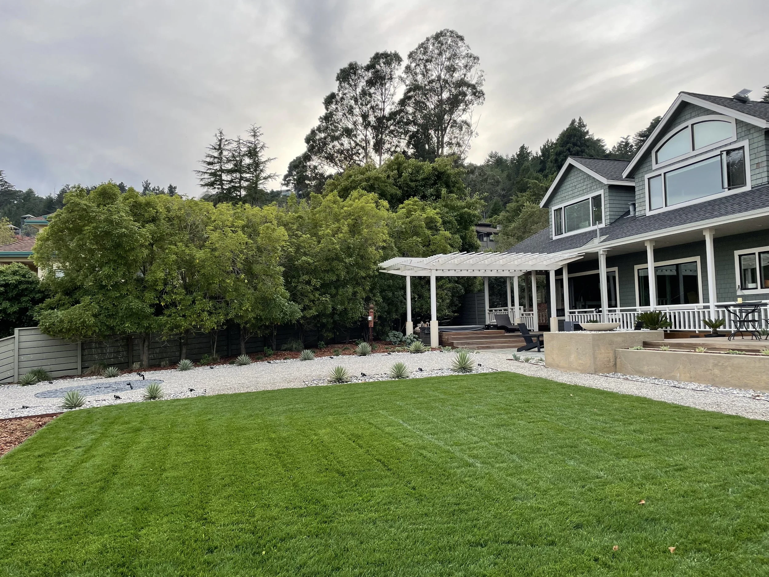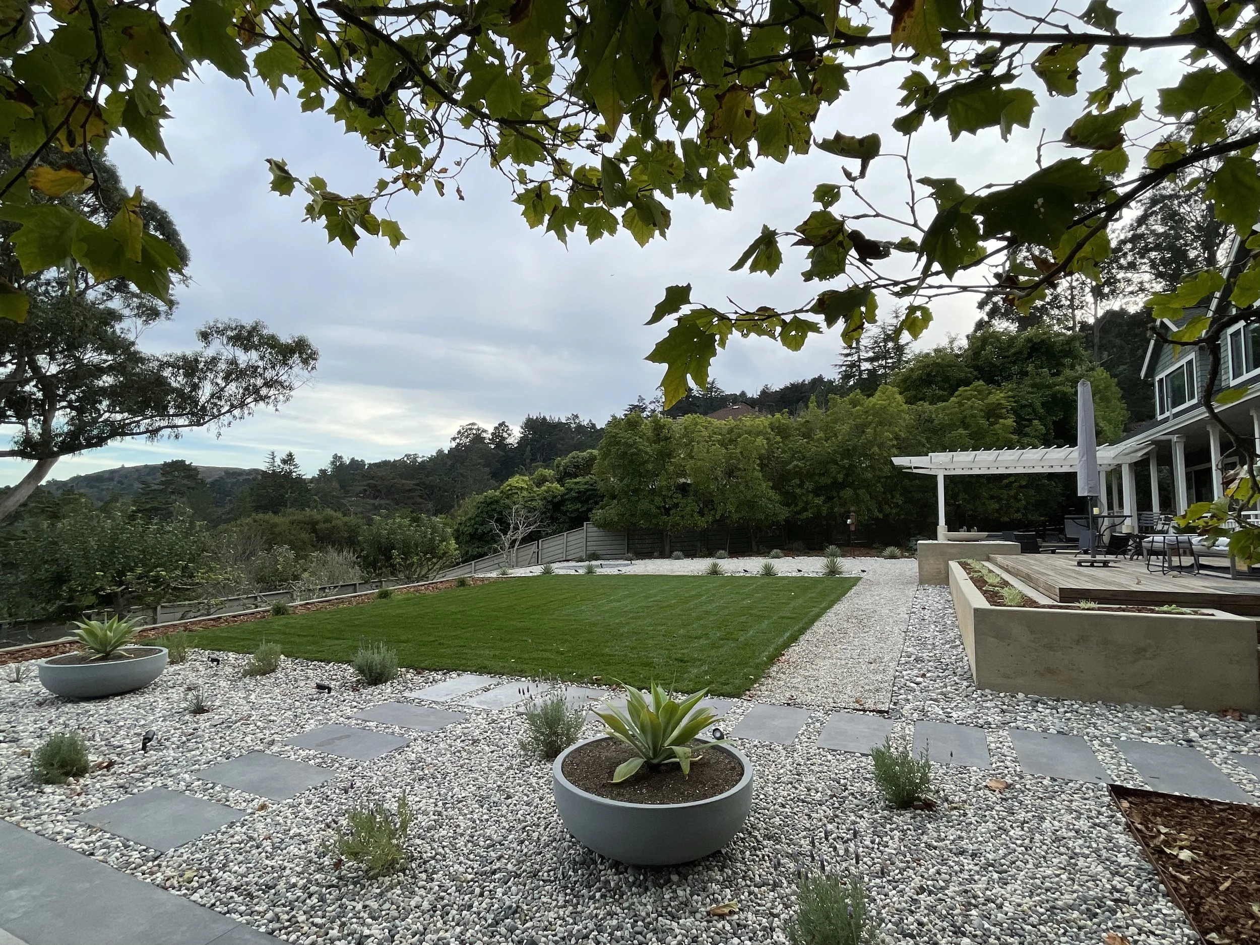 The remaining lawn, roughly ¼ the size of the original, dramatically reduced water use on the property while still providing space for the family’s fabled volley ball matches.